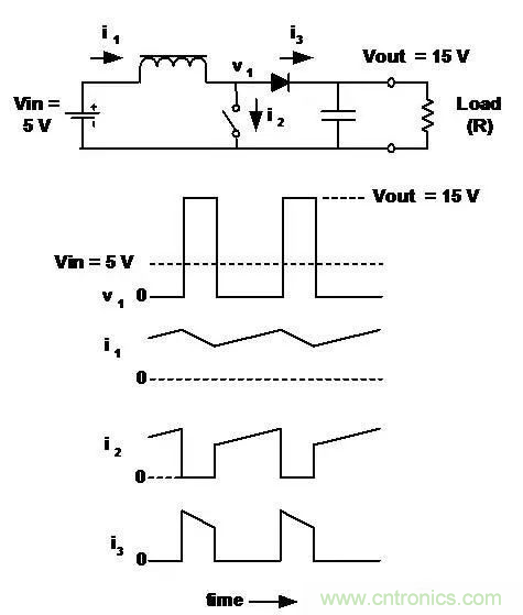 ■輸入電流連續,輸出電流不連續(與降壓調整器相反)。