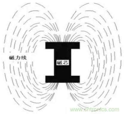 正如上所指,對(duì)于一個(gè)開(kāi)環(huán)磁路的電感(以工字電感為例),其磁力線的主磁路是空氣。如圖1。