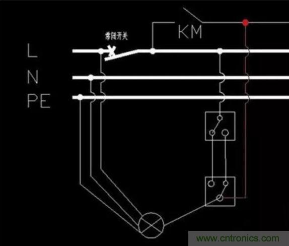 把兩個單刀雙擲開關的兩個觸點分別相連,即開關1的觸點1與開關2的觸點1相連,開關1的觸點2與開關2的觸點2相連,然后兩個開關的刀做為整個開關的兩端接入電燈的兩端。這樣當開關1和2的刀同時接打向各自觸點1或同時打向觸點2時,電路接通,則燈亮。若兩開關的刀一個打向觸點1而另一個打向觸點2時,電路不通,則燈滅。因此兩個開關都可以控制燈。兩個開關可以放在樓梯的上下兩端,或走廊的兩端,這樣可以在進入走廊前開燈,通過走廊后在另一端關燈,既能照明,又能避免人走燈不滅而浪費電。