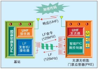 在這些應(yīng)用中,基站用125 kHz頻率發(fā)送命令,同時等待附近的有效應(yīng)答器以UHF頻率發(fā)回響應(yīng)。智能應(yīng)答器一般處于接收模式并等待任何有效的125kHz基站命令。如果接收到任何有效的基站命令,應(yīng)答器以UHF頻率發(fā)送響應(yīng)。這就是我們所說的“無源無鑰匙門控系統(tǒng)”。由于PKE系統(tǒng)采用125kHz電路進(jìn)行雙向通信,因此低成本、小體積及低功耗PKE應(yīng)答器可使用含有數(shù)字與低頻前端的集成系統(tǒng)級芯片(SoC) 智能微控制器單元(MCU)來生產(chǎn)。