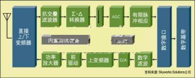 高動態范圍A/D靠一個高速采樣時鐘提供時鐘信號,所以在設計和布局階段必須仔細考慮基底噪音及RF前端的耦合噪聲。來自RF采樣時鐘諧波的干擾如果處在通道帶寬之內的話,可能會降低接收器的性能。一旦信號實現了數字化,一個公共的硬件平臺可用來提取期望信號,同時阻止干擾信號。幾項射頻功能,如直流偏移抵消、自動增益控制和頻率偏移校正等,在實際的數據解調之前可以作為射頻的一部分被執行。這減輕了對DSP指令運算速度方面的要求,同時使無線電控制方式更加靈活。