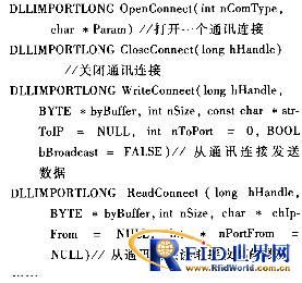 (1)底層數(shù)據(jù)通訊接口組件:負責數(shù)據(jù)通訊的鏈路層和物理層,是讀寫器與應用軟件通訊的物理基礎,在應用邏輯上,與應用通訊協(xié)議無關。所以,底層數(shù)據(jù)通訊應獨立設計相對固定的接口,與高層應用分離。