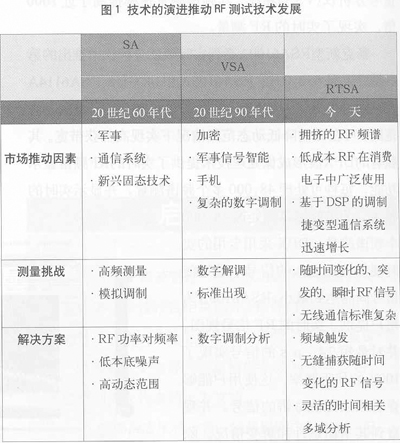 19世紀60年代,James Maxwell 通過計算推斷出存在著能夠通過真空傳輸能量的電磁波。此后工程師和科學家們一直在尋求創新方法利用無線電技術。接下來,隨著軍事和通信領域技術的深入發展,20世紀無線電技術一直在不斷創新,技術的演進也推動著RF測試技術向前發展(見圖1)。從軍用的跳頻電臺、雷達到RFID,第三代移動通信、藍牙、WLAN,各種微功率發射裝置等,瞬態信號如今無處不在。瞬態信號存在的普遍性使得技術人員需要有效的儀器對其進行捕獲、存儲并回放分析。另外,監測間歇性干擾或頻譜使用情況等也需要一種有效的手段來實現“寬帶實時監測”。