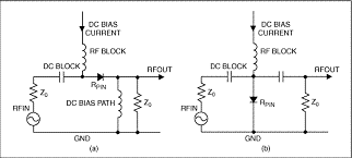 圖2. RF信號通過串聯(a)或并聯(b)配置的PIN二極管衰減
