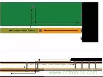圖1:信號電流從器件引腳經過通孔流到較低層。