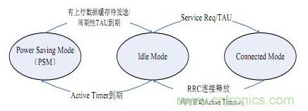 PSM即低功耗模式,是3GPP R12引入的技術(shù),其原理是允許UE在進入空閑態(tài)一段時間后,關(guān)閉信號的收發(fā)和AS(接入層)相關(guān)功能,相當(dāng)于部分關(guān)機,從而減少天線、射頻、信令處理等的功耗消耗。借圖: