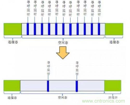 eDRX即非連續(xù)接收,是3GPP R13引入的新技術(shù)。R13之前已經(jīng)有DRX技術(shù),從字面上即可看出,eDRX是對原DRX技術(shù)的增強:支持的尋呼周期可以更長,從而達到節(jié)電目的。繼續(xù)借圖:
