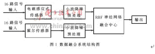 隨著電子技術、神經網絡和人工智能處理技術的發展,國內外都在開展新的漏磁信號處理方法的研究。由于傳統方法受人為因素影響嚴重,容易產生漏檢誤檢,大大影響了檢測準確度,因此特別需要一種對缺陷信號的智能化處理方法。多傳感器數據融合技術是近年來形成和發展起來的一種自動化信息綜合處理技術,它充分利用多源信息的互補性和計算機的高速運算能力來提高結果信息的質量。由于多傳感器數據融合可以對來自多個傳感器的數據進行多級別、多方面、多層次的處理,從而產生新的有意義的信息,而這種信息是任何單一傳感器所無法獲得的, 并且它還能有效地消除由于單一類型傳感器失效而引起的誤差,因而多傳感器數據融合在信號處理領域得到了廣泛的關注[1]。本文利用小波閾值降噪算法來突出信號缺陷特征,并將處理后的信號送入RBF神經網絡數據融合中心,利用兩類傳感器之間的信息冗余來提高檢測精度,消除測量中的不確定性,獲得更準確可靠的測量結果。
