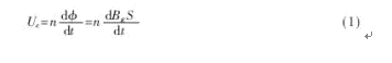 電磁感應式傳感器的工作原理是:當它貼著鋼管表面掃查時,鋼管缺陷產生的漏磁場會引起穿過線圈的磁通量變化,從而使電磁線圈中產生感生電動勢,形成缺陷信號。當檢測用的電磁線圈與鋼管做相對運動時,檢測漏磁場的線圈所產生的感應電動勢Uc為: