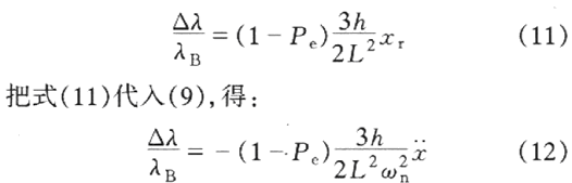 可見光柵的應變ε與質量塊相對于機座的位移xr之間成線性關系.另外,根據式(1),光纖光柵的布拉格波長變化與位移xr間的關系為: