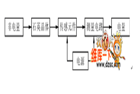 石英傳感器的敏感元件是石英晶體,石英晶體傳感器的原理框圖見圖1,石英晶體的主要成份是二氧化硅,其密度為2.65×103kg/m3,莫氏硬度為7,熔點高達1750℃,難溶于水,長期穩定性能好,石英晶體具有較高的機電耦合系數,線性范圍寬,重復精度高,滯后小,無熱釋電效應,動態特性優良,振動頻率穩定,是其它材料難以代替的。