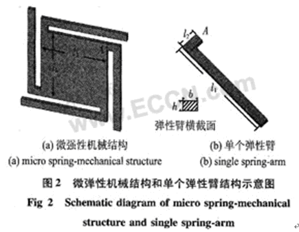 動力學振動系統(tǒng)是眾多慣性傳感器中的重要組成部分,其參數(shù)的選取決定了傳感器的性能的優(yōu)劣。針對基于菲涅耳衍射微透鏡的新型光學加速度傳感器設計了一種簡單實用的敏感加速度的振動系統(tǒng),它是由一個微彈性機械結(jié)構(gòu)連接在外框架上構(gòu)成。微彈性機械結(jié)構(gòu)不僅是微型加速度傳感器重要組成部分,而且,在微型驅(qū)動器、微位移計、微陀螺儀及其他慣性傳感器中也有著重要的應用,在微機電系統(tǒng)(MEMS)中發(fā)揮著重要的作用。目前,MEMS中類似于微彈性機械結(jié)構(gòu)的敏感裝置主要有硅懸臂梁、直角彈性結(jié)構(gòu)及結(jié)構(gòu)更復雜的硅彈簧等。微彈性機械結(jié)構(gòu)是在一塊硅片上通過簡單的MEMS工藝加工的,可以通過改變硅片的厚度和彈性臂的寬度來設計不同的彈性系數(shù)和振動系統(tǒng)的固有頻率,以滿足傳感器的要求。具體討論了微彈性機械結(jié)構(gòu)參數(shù)的選取,并且,模擬分析了傳感器的性能和誤差。