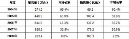 表1 2004-2008年中國數(shù)碼相機(jī)市場銷售情況