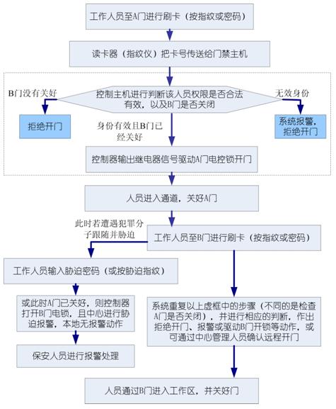 根據不同場所要求,本系統可以擴展為ABC三門以及更多門的多門互鎖門禁,來達到更高級別的安全要求。還可以配合中心遠程控制,來實現本地確認開門及中心遠程開門相結合的AB互鎖雙門門禁。系統功能特點如下:
