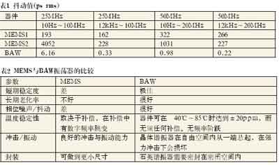 該研究采用已有測量技術(shù)對商用BAW與MEMS振蕩器的多種不同電特性進(jìn)行了比較,在此基礎(chǔ)上進(jìn)行了部分討論,并在表2中做了相應(yīng)總結(jié)。結(jié)果表明,兩種技術(shù)是不可互換的。頻率偏差、MEMS振蕩器的低Q值與數(shù)字溫度補(bǔ)償都造成了許多應(yīng)用中不可接受的頻率波動(dòng)。