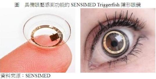 針對此一問題,日前瑞士SENSIMED公司宣布推出內嵌微型的壓力感測器以準確檢測眼球眼壓的隱形眼鏡產品,稱之為SENSIMED Triggerfish®。透過STMicroelectronics所提供的微機電技術,在隱形眼鏡鏡片中嵌入壓力感測裝置,記錄一段時間內(通常是24小時)患者因角膜壓力與眼球液壓變化時的眼球曲度變化情況,并將鏡片扭曲的電阻變化讀數信息透過無線技術輸出供醫療參考;而透過此鏡片所取得的信息準確度是傳統的眼科儀器檢測所無法達到的。
