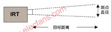 視場物體的熱輻射“體現”出了其表面的溫度,這一點與無線電信標非常相似。不同之處在于在IRT測量中,熱輻射來自于物體表面上的一個已知大小的斑點。您需要捕獲所有輻射,而不能讓任何輻射在沿途上被阻隔。在一段特定距離上的斑點直徑(也就是一段給定距離上的“視錐”的橫截面面積)由器件的光學特性來決定。一般來說,距傳感器越遠,斑點的直徑就越大。斑點尺寸常常用一個比值來表示,比如50:1或10:1。這意味著最小的目標斑點直徑為傳感器至感興趣物體間距離的1/50或1/10(圖1)。