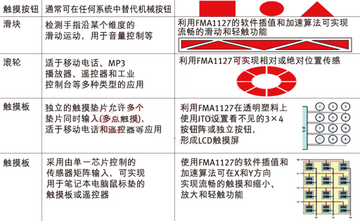表2:各種應用的觸摸控制方案。
