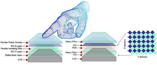我們將深入了解一下兩個最常用的觸摸屏技術(shù)。使用最廣泛的技術(shù)是阻性觸摸。絕大多數(shù)人可能以前都在銀行的ATM機(jī)上、許多商場里的信用卡檢查機(jī)、甚至是在餐館里輸入一個訂餐單時(shí)用過這類阻性觸摸技術(shù)。而投影型容性觸摸屏,使用的范圍還沒有這么廣,但具有快速發(fā)展動力。許多采用投影型容性界面的手機(jī)和便攜式音樂播放器都在投放市場。無論是阻性或容性技術(shù)都有一個堅(jiān)固的電組件,都利用ITO(氧化銦錫,透明導(dǎo)體),這兩種技術(shù)都會長期使用。