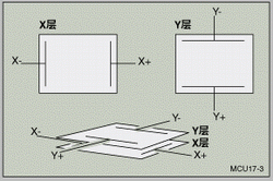過去,為了將電阻式觸摸屏上的觸摸點坐標讀入微控制器,需要使用一個專用的觸摸屏控制器芯片,或者利用一個復雜的外部開關網絡來連接微控制器的片上模數轉換器(ADC)。夏普公司的LH75400/01/10/11系列和LH7A404等微控制器都帶有一個內含觸摸屏偏置電路的片上ADC,該ADC采用了一種逐次逼近寄存器(SAR)類型的轉換器。采用這些控制器可以實現(xiàn)在觸摸屏傳感器和微控制器之間進行直接接口,無需CPU介入的情況下控制所有的觸摸屏偏置電壓,并記錄全部測量結果。本文將詳細介紹四線、五線、七線和八線觸摸屏的結構和實現(xiàn)原理。