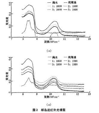 儀器與試劑:MPA近紅外光譜儀,汽油,煤油樣品配置:在秦皇島海域采取一定量的海水,分別移取100、200、300、500 的汽油、煤油到100 mL的海水中,充分搖勻、靜置使得樣品能夠模擬溢油在海水中的分散狀況。