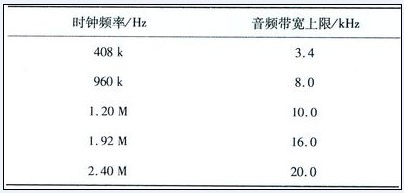 表1 取樣時鐘頻率與音頻帶寬上限對應表