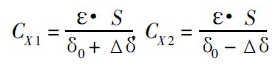 式中: ε為兩極板間介質的介電常數; S 為兩極板相對有效面積; δ為兩極板的間隙。