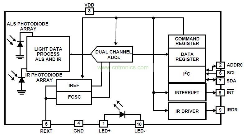 3、雙通道ADC并行作環(huán)境光測(cè)量和接近檢測(cè)