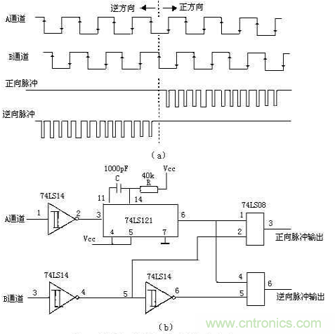 圖2:光電編碼器鑒相計(jì)數(shù)電路