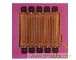 電容式壓力傳感器利用MEMS技術(shù)在硅片上制造出橫隔柵狀,上下二根橫隔柵成為一組電容式壓力傳感器,上橫隔柵受壓力作用向下位移,改變了上下二根橫隔柵的間距,也就改變了板間電容量的大小,即△壓力=△電容量(圖5)。電容式壓力傳感器實物如圖6。