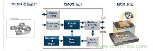 MEMS硅晶振由于采用全自動化的半導體工藝,內部兩個晶片(一個是MEMS諧振晶片、一個是具有溫補功能的鎖相環CMOS電路)采用MCM封裝在一起。