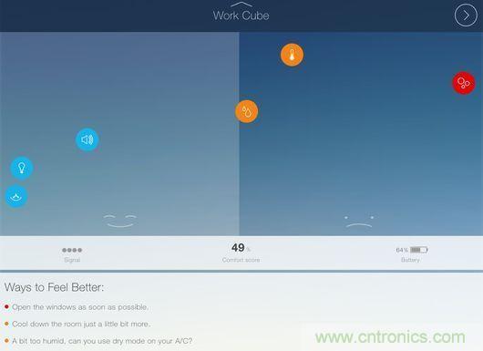 測(cè)試人員發(fā)現(xiàn),CubeSensors給出的這些信息較想象中更為有用。例如,產(chǎn)品提示一處起居室的溫度有點(diǎn)低,如果適當(dāng)提升溫度會(huì)讓人感覺更加舒適及放松。而在辦公室中,CubeSensors提示改善光照條件能夠幫助提升工作效率。在臥室中,產(chǎn)品給出了需要開窗以便改善空氣質(zhì)量的建議。用戶除了查看數(shù)據(jù)之外,還能看到應(yīng)用給出的實(shí)用建議,例如“盡快開窗”或“提升溫度會(huì)讓你感覺更加舒適”。盡管看起來似乎平淡無奇,但CubeSensors背后的團(tuán)隊(duì)表示,通過這些小建議,產(chǎn)品可以幫助用戶避免罹患感冒、過敏、頭疼等癥狀。