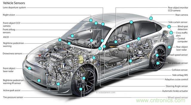 豐田透露過他們的高速道路自動駕駛汽車上有12個傳感器:1個藏在內后視鏡里的前攝像頭,5個測量周圍車輛速度的雷達,和6個探測周圍目標位置的激光雷達5。