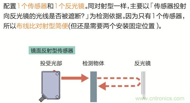 鏡反射型光電傳感器:在這里也相當(dāng)于通過反光鏡的反射光而不是被測(cè)物的發(fā)射光,所以也是可以有效解決這些問題的。