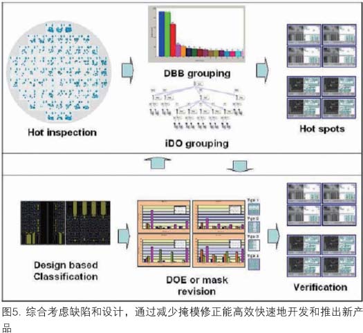 用與設計相關的檢測設置,現在可以產生更智能化的檢測菜單,注意力集中在最重要的芯片區域。這一技術已成功地在開發和生產工廠中進行了試驗。引入新方法后,缺陷識別更有效,因而能通過分析實驗結果減少工藝開發時間(圖5)。由于能方便地監控關鍵結構,就可以評估每一組實驗,以便選擇刻印圖形結果最好的工藝條件。